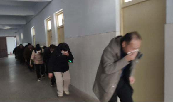 演练模拟公共卫生服务楼二楼电路故障引发火情,警报响起后,演练正式开始。各小组迅速响应,通讯组即时发布疏散指令,疏散引导组按“患者优先、重患重点协助”原则,引导人员用湿毛巾捂口鼻、低姿弯腰沿预定通道撤离;抢险救护组携带灭火器、急救箱赶赴现场,开展初期火灾扑救与伤员检伤分类。全体人员快速有序抵达安全集结区,各科室清点人数并汇报,现场还演示了灭火器规范使用方法,全程无拥挤、踩踏等次生风险。