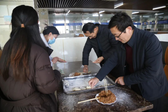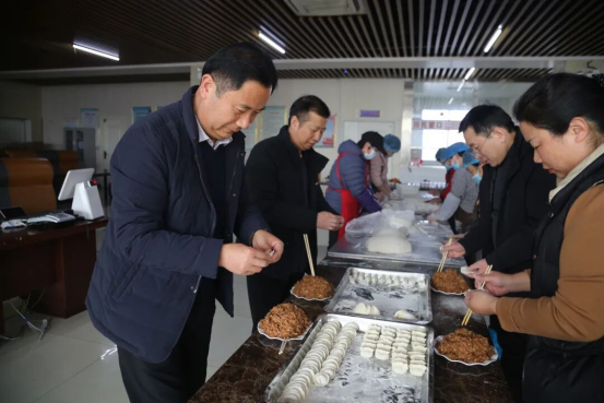 2月14日(农历腊月二十七)下午,医院营养食堂内热闹非凡。县卫生健康体育委员会党组成员、县人民医院党委书记刘欣,党委副书记、院长梁玉东带领班子成员及各行政职能科室职工齐聚于此,开展了一场别开生面的包饺子活动。大家分工明确,揉面、擀皮、包馅,忙得不亦乐乎。每一个饺子都饱含着对住院患者的满满祝福,大家希望通过亲手劳作,将节日的温暖与关怀传递到每一位患者心中。