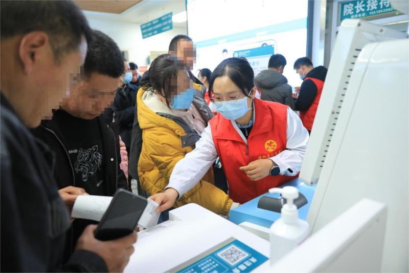 在服务现场,没有生硬的指令,只有志愿者们那饱满的热情和贴心的举动,每一个细节都蕴含着对患者的深深关怀。服务台内,志愿者们语气轻柔,耐心细致,如同知心好友般认真倾听每一位患者的疑问。他们细致地指引就诊路线,手把手地协助患者完成挂号、缴费、预约等一系列流程。尤其是面对行动不便的老人、残疾人等特殊群体,他们主动上前搀扶,全程陪同引导,用温暖的陪伴破解了特殊群体就医过程中的急难愁盼问题,让患者感受到无微不至的关怀。