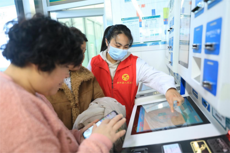 自助服务区内,面对不会操作自助机的患者,志愿者们俯下身子,放慢语速,如同耐心的老师,一步一步地手把手教学,详细讲解操作步骤和注意事项。他们的耐心如同神奇的魔法,有效缩短了患者自助办理的时间,让就医变得更加高效快捷。取药窗口旁,志愿者们主动维持秩序,疏导人流,轻声提醒患者有序排队。他们时刻保持警惕,及时响应并妥善处置各类突发情况,用细心保障了取药环节的顺畅有序,减少了患者的等待焦虑,让患者能够安心取药。