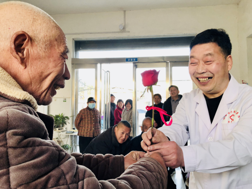 “真没想到,院长亲自来给我量血压,还仔细叮嘱我饮食和用药的注意事项。更让我感动的是,县红十字会的领导也来了,给我卧病在床的老父亲送来了面粉、粉条、春联和糖果。”王西周言语间满是感激。他提到的老父亲,今年已年迈,2019年,因意外摔倒致使左下肢粉碎性骨折,术后长期卧床。从此,乡村医生王朝旭便成了老人的“专职保健医”。