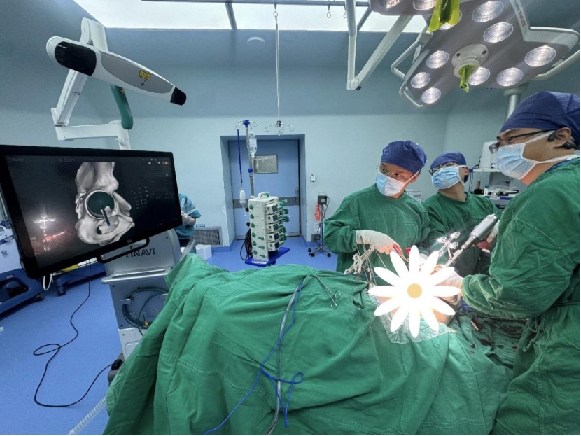 术中,机器人系统实时动态定位,机械臂严格遵循术前规划路径操作,髋臼磨锉、股骨截骨一气呵成,误差控制在亚毫米级。与传统手术相比,机器人辅助最大限度减少人为偏差,保护健康骨质,创伤小、出血少、手术时间更短。在团队精准操作与机器人智能配合下,高难度置换手术顺利完成。