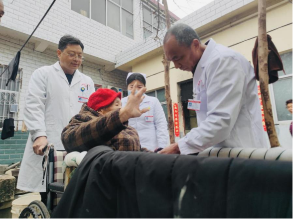 患有精神疾病的73岁的村民卢女士,5年前因脑梗死后遗症导致生活不能自理,行动也只能依靠轮椅,与丈夫魏先生相依为命,家庭情况特殊。作为卢女士的签约家庭医生,王满朝始终心系着这个家庭。