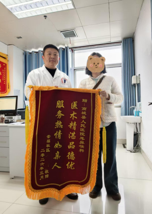 第二面锦旗,来自上海的钟先生。年前,他因剧烈头晕被平车推进住院部,整个人僵硬得不敢动弹——只要头稍一动,天旋地转的感觉就会袭来。更让他焦虑的是,年前还有急事需要开车返回上海。