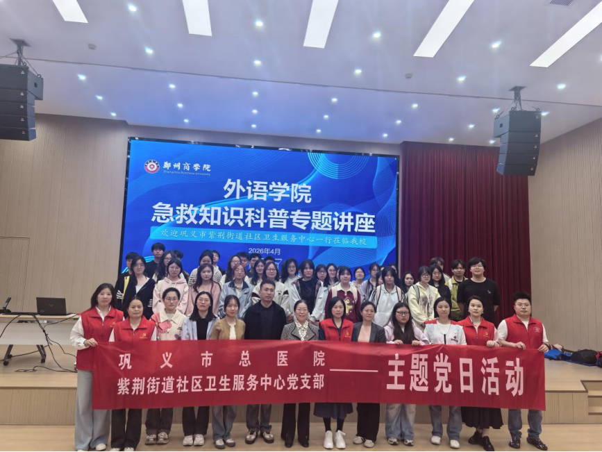 2026-4-18 来源:医药卫生网 - 医药卫生报 浏览:次医药卫生网讯(记者李志刚 通讯员李燕娜) 为深入推进党建与服务深度融合,切实为青年学子办实事、解难题,近日,中共巩义市总医院紫荆街道社区卫生服务中心党支部联合中共郑州商学院外国语学院教师第二党支部、学生第一党支部,共同开展“党建引领强服务 健康护航伴成长”主题党日联建活动,为学子送上急救知识与心理关怀“双重礼包”。