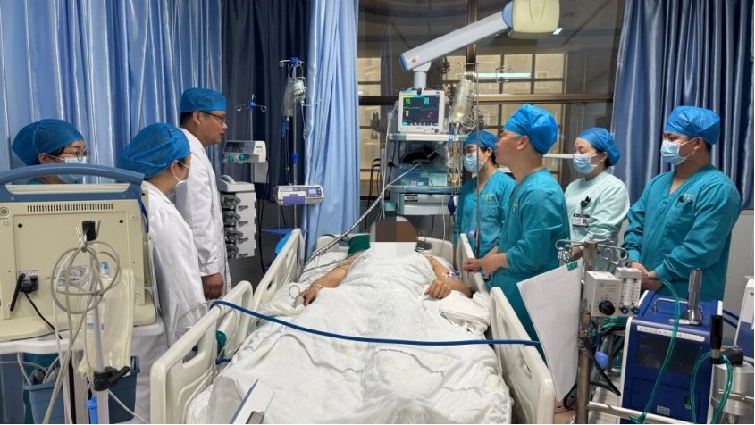 心脏冠状动脉血管开通后,患者血压持续偏低,处于休克状态,仍面临生命危险。经评估后拟启动ECMO治疗。在导管室待命的ECMO团队主治医师李若禹,13时许开始穿刺左侧股动脉、股静脉,建立血管通路,13时20分,副主任医师焦胜旗操作ECMO并成功转机,为患者提供体外循环与氧合支持。随后患者被重症医学科主任医师范淑敏接手,ICU余艳歌护理团队实施特级护理,医院医务科组织多学科会诊,动态监测患者生命指标,精准调整诊疗方案,全力守护患者生命安全。经过3天的精心救治,患者心脏功能恢复,各项生命指标正常,撤除ECMO转入普通病房。目前,患者精神状态良好,饮食、睡眠恢复,开始心脏康复治疗。