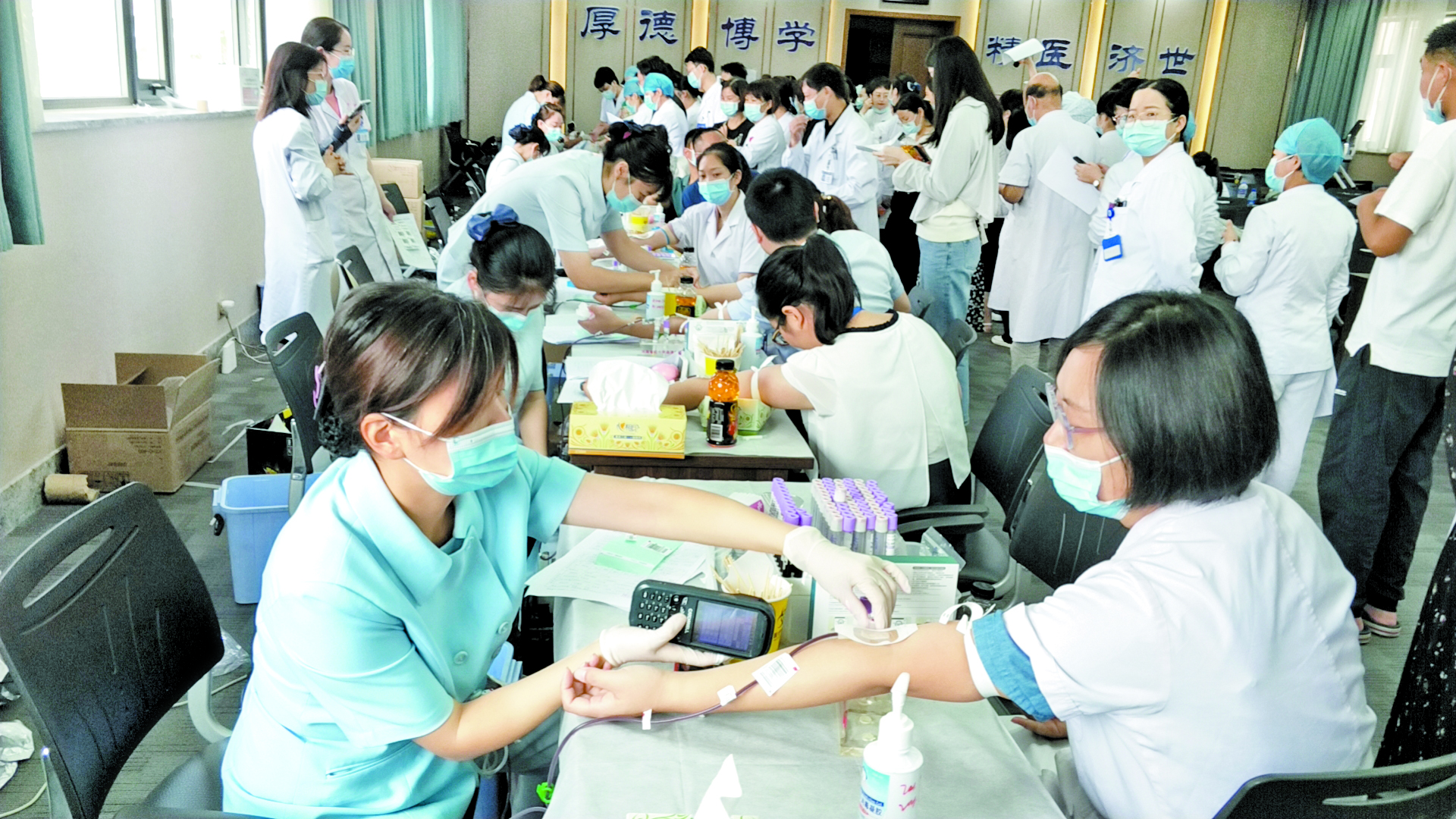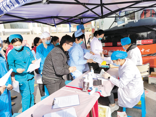 2022年11月,因疫情郑州血液招募工作十分困难,临床用血频频告急,河南省胸科医院在严格做好疫情防控的同时,联合河南省红十字血液中心半个月内连续开展两次无偿献血活动,300余人共献血近10万毫升。医务工作者白衣执甲,逆行出征,奋战在抗疫最前线;同时,救死扶伤,稳守医疗阵地,义无反顾地挽袖献血,保障临床用血,以另一种方式为生命“续航”。