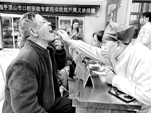 11月14日,在叶县廉村镇卫生院,医务人员为群众检查口腔。当天,平顶山学院附属口腔医院组织专家团队走进叶县廉村镇卫生院,免费为当地百姓开展口腔健康义诊,将专业、便捷的口腔诊疗服务送到群众身边。