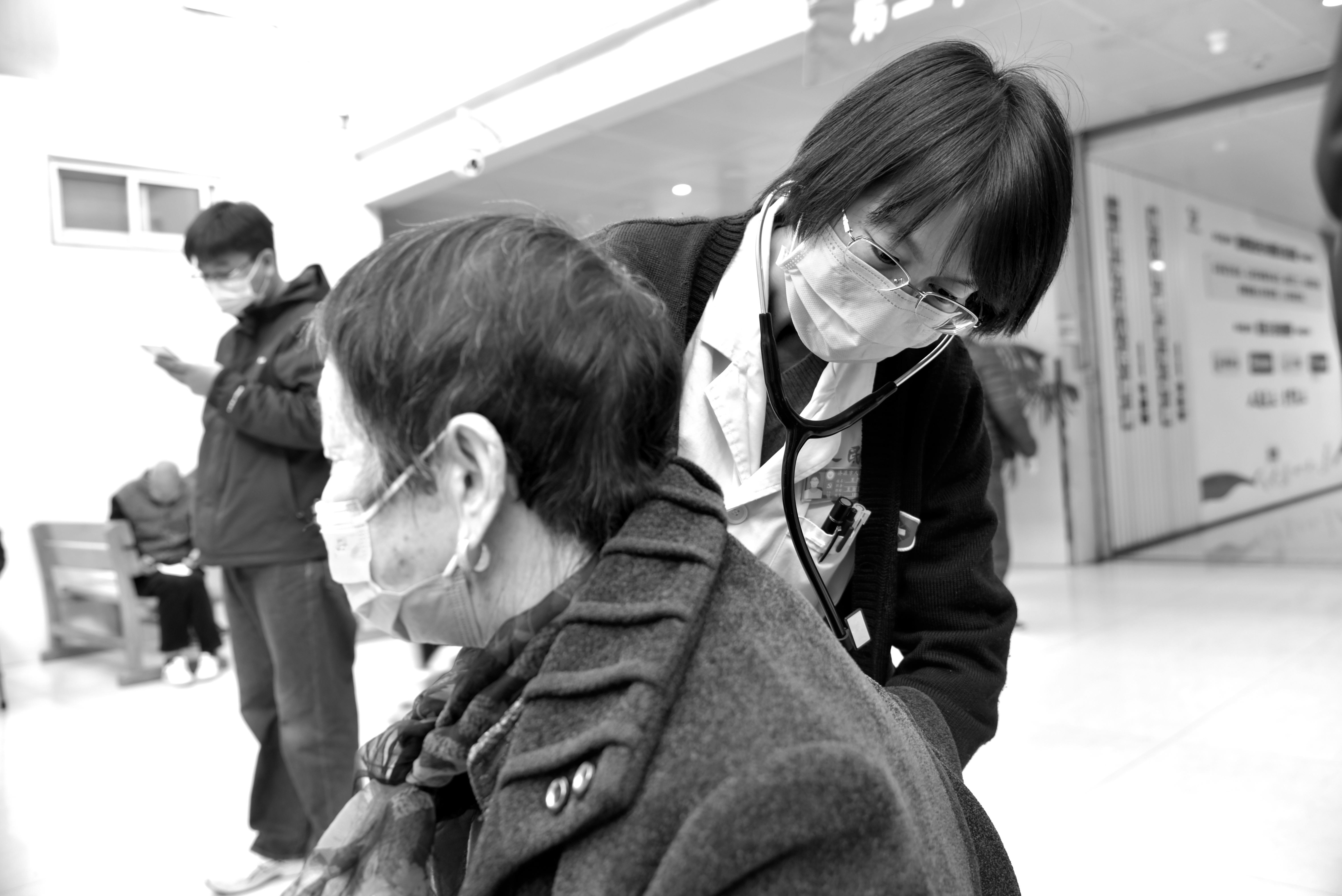 11月18日,在济源市人民医院,医务人员为群众进行肺功能听诊。当天,该院开展世界慢阻肺日宣传活动,向群众普及慢阻肺防治知识,织密基层呼吸健康防护网。