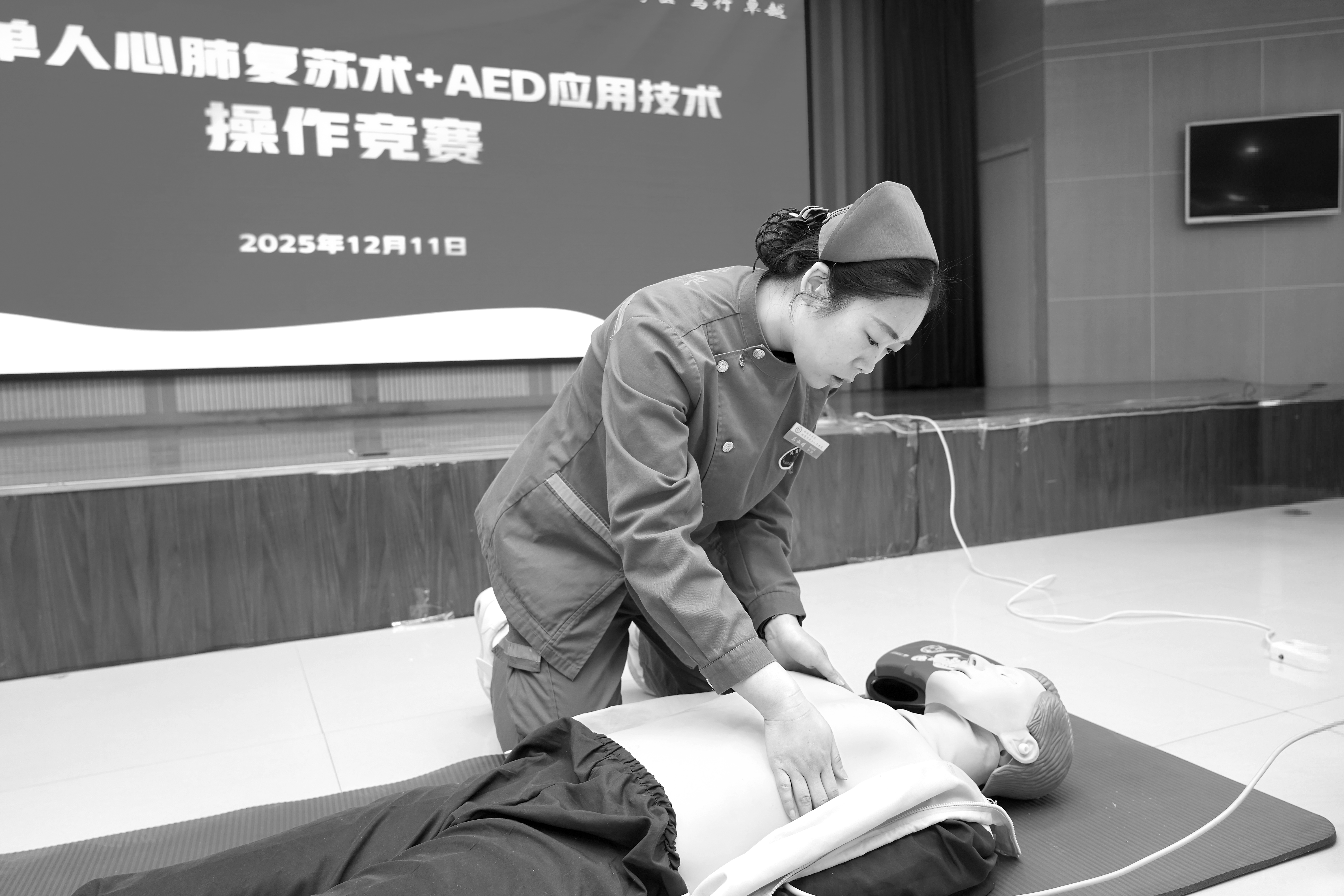 ↑近日,在鹤煤总医院山城院区,护理人员进行急救操作。当天,鹤煤总医院举办护理急救技能竞赛,进一步提升护理人员急救专业技能,强化护理应急处置能力。