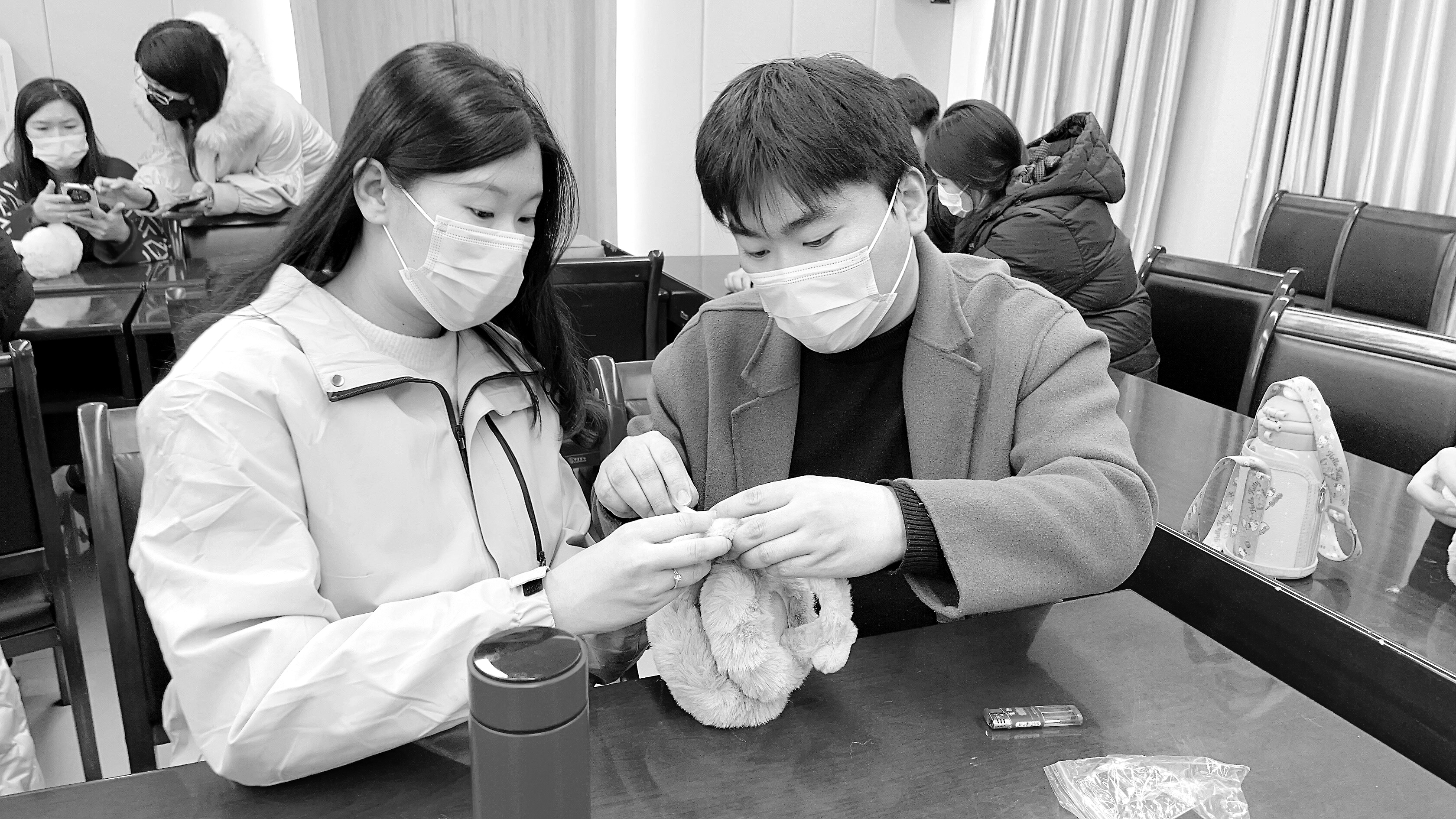 ↑近日,在鹤壁市妇幼保健院孕妇学校,孕妇及其家属一起做耳暖。当天,鹤壁市妇幼保健院孕妇学校开展手工胎教活动,以缓解孕妇焦虑、深化亲子联结与胎教互动,吸引众多孕妇及其家属参与。 王 平 唐艳红/摄
