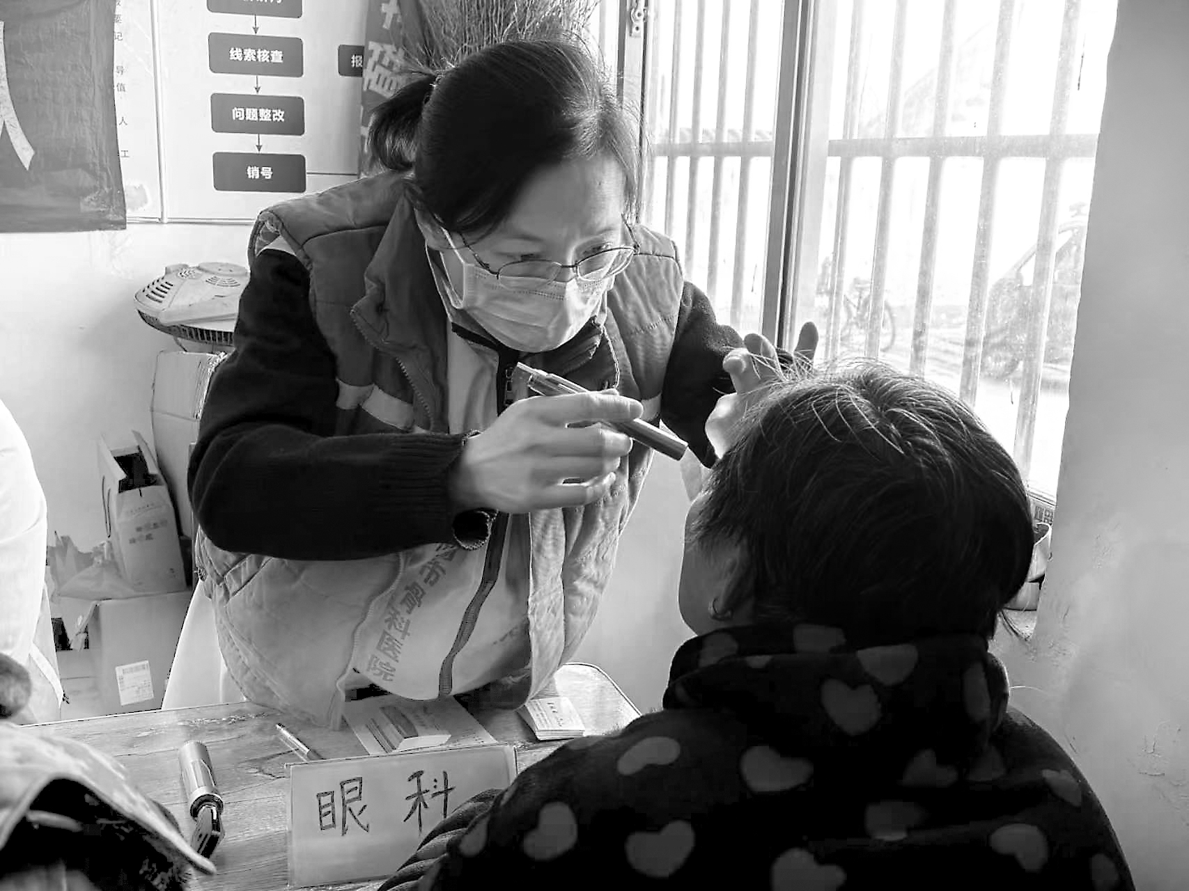 医务人员为群众检查眼睛