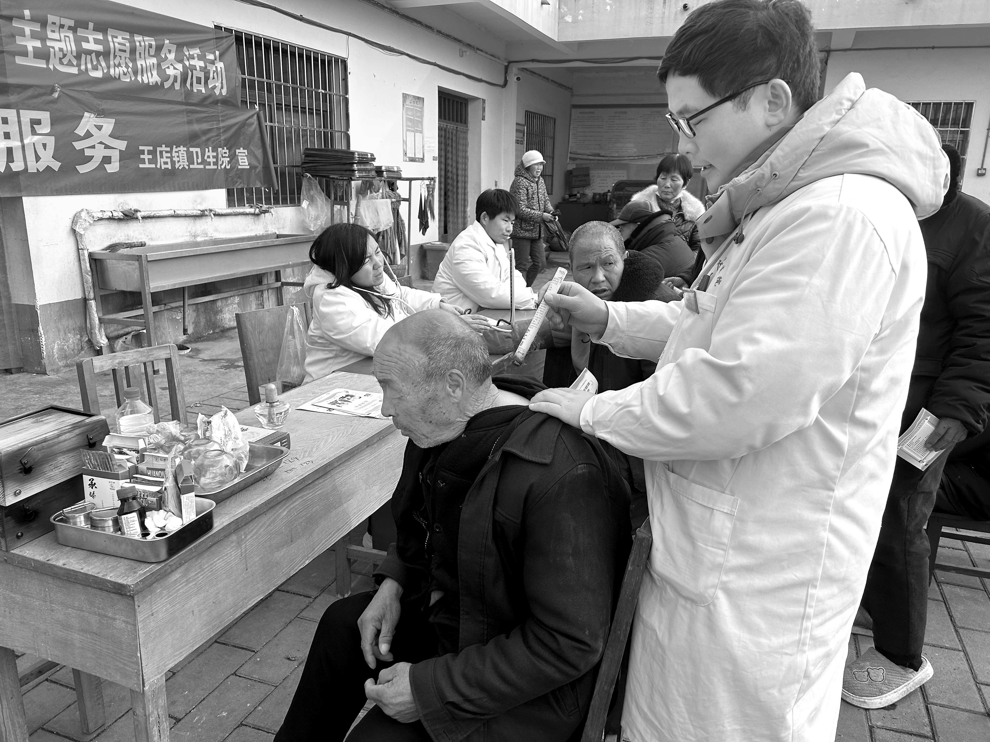 医务人员为老人艾灸