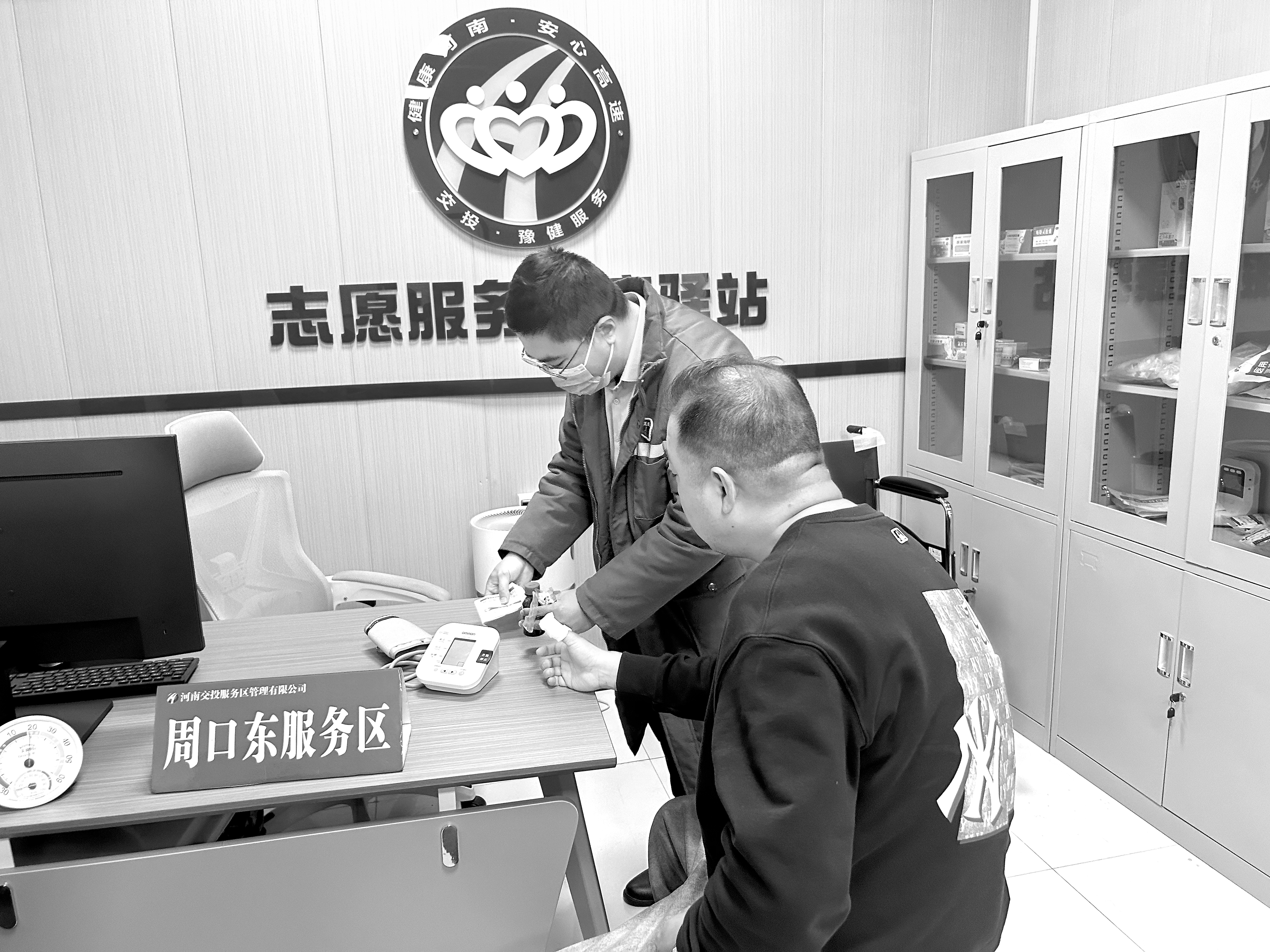 ↑近日,在大广高速周口东服务区,医务人员给群众处理伤口。2026年春节期间,周口市卫生健康委统筹市直及属地医疗机构,在大广高速周口东服务区健康驿站开展春节健康护航志愿服务活动,切实满足广大司乘人员的医疗卫生服务需求。 侯少飞 林雪柯/摄