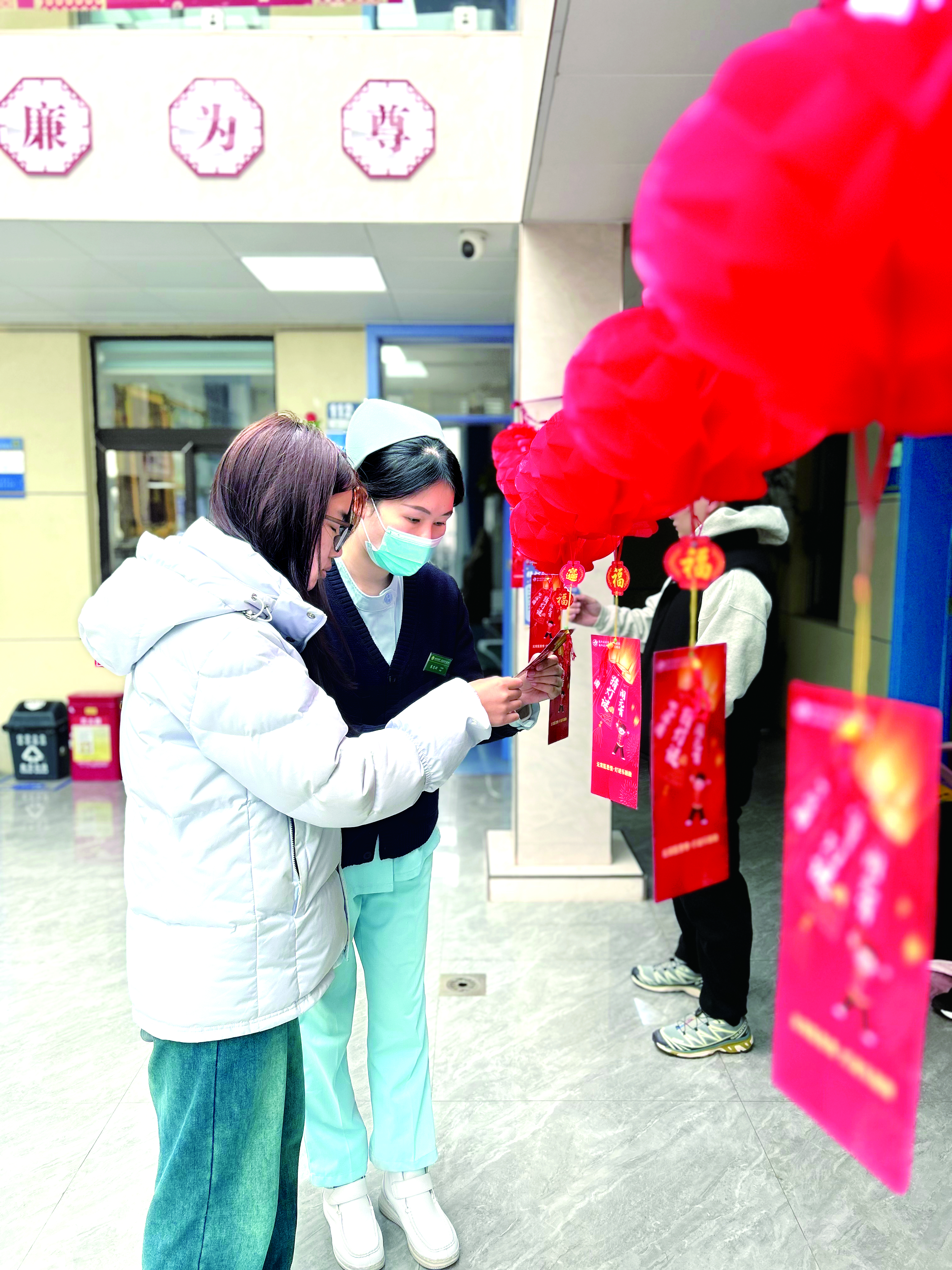 2026-03-03 来源:医药卫生报 第一版 浏览:24515 次↓3月2日,南阳医专第三附属医院举办了“元宵医患情·灯谜乐融融”猜灯谜活动,不仅让患者在就医过程中感受到传统节日的喜庆氛围,缓解了就诊压力,更以温馨有趣的形式拉近了医患距离,传递了医院的人文关怀,进一步营造了和谐、温暖、友善的医患关系。 乔晓娜 韩 冰/摄