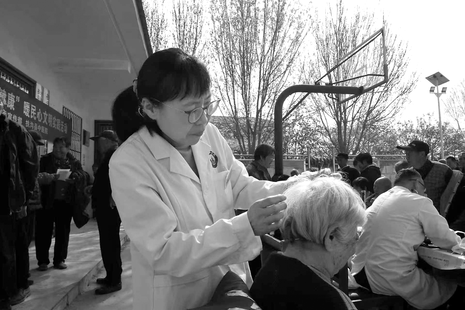 近日,在扶沟县江村镇张庞行政村,医务人员为群众把脉问诊。活动当天,扶沟县委宣传部联合县中医院,组织中医专家和志愿者深入江村镇张庞行政村开展“中医药下乡 护百姓健康”文明实践活动。 侯少飞 张宝锦/摄