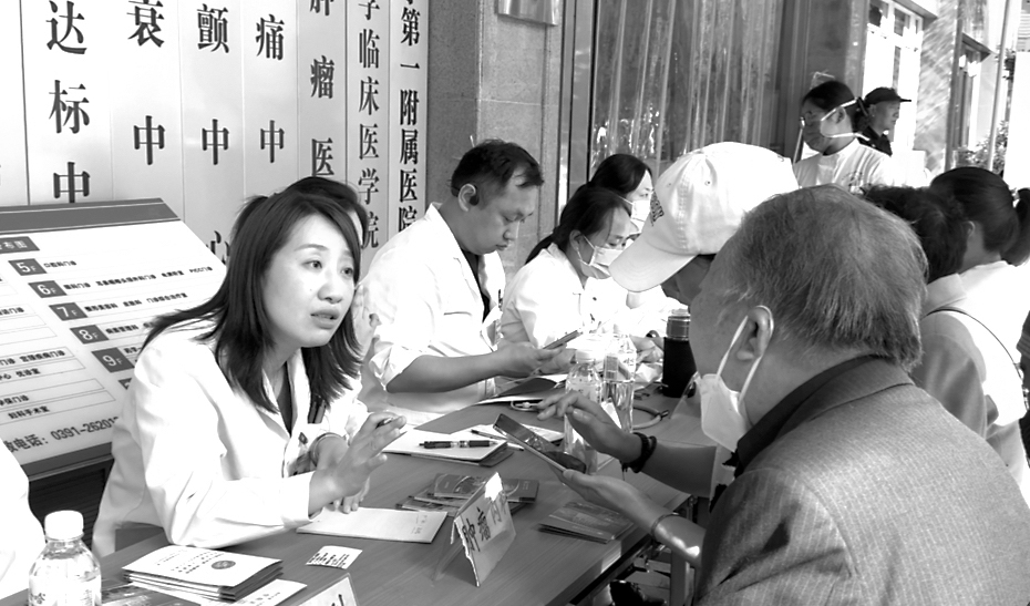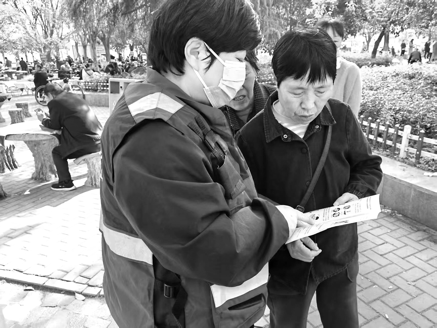 4月17日,焦作市第二人民医院医务人员为群众进行健康宣教。
