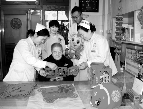 1月25日,开封市陇海医院护士长任娟带领医护人员和不能回家过年的患者一起,组装灯笼和福字,用窗花、福字、吉祥物装点病房,让他们在医院过一个温馨喜庆的春节。