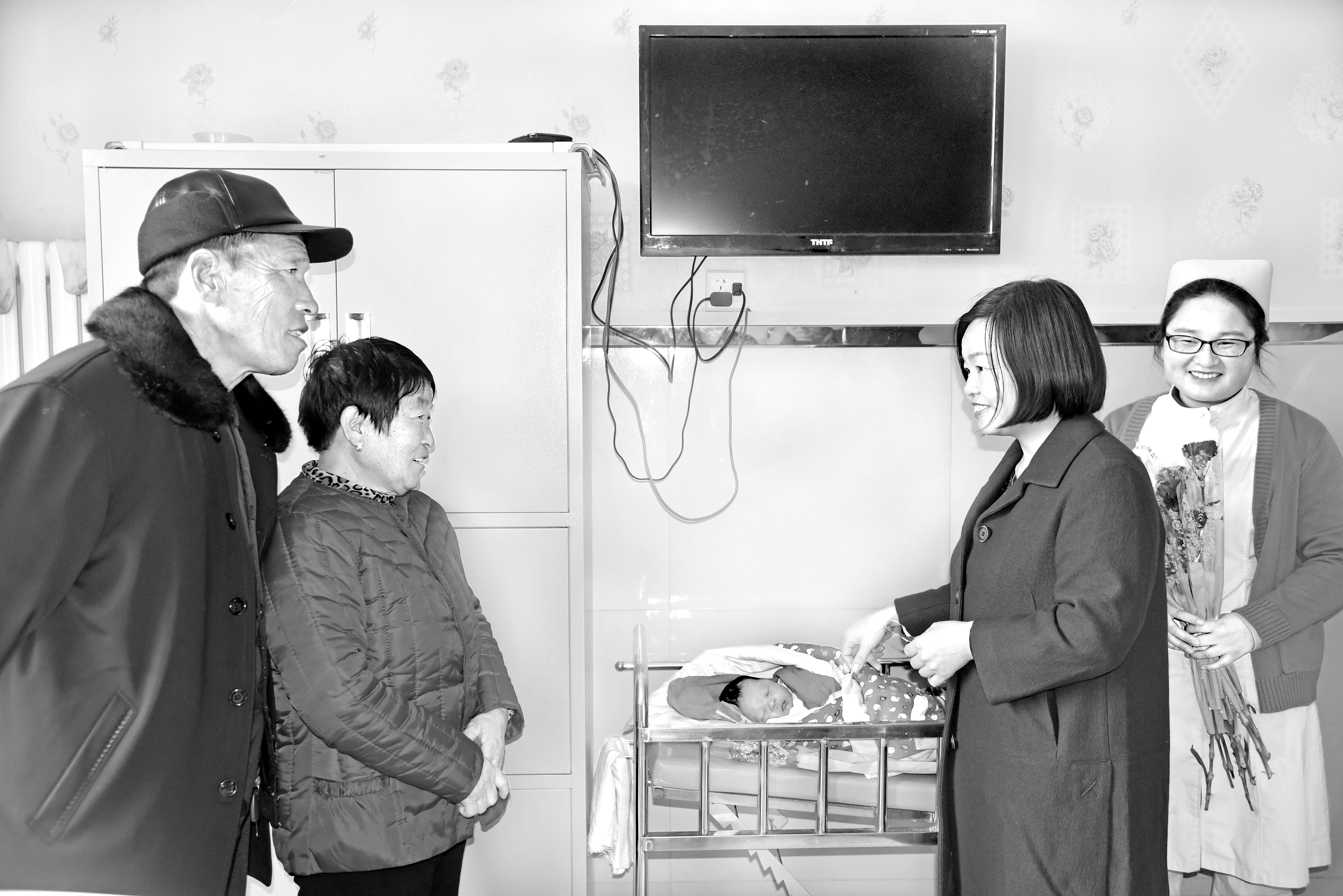 正月初一,灵宝市妇幼保健院院长孙筱萍及班子成员深入病区看望住院患者,为他们送来慰问品及鲜花,并致以节日的问候和祝福。 刘 岩 党宁宁/摄 |