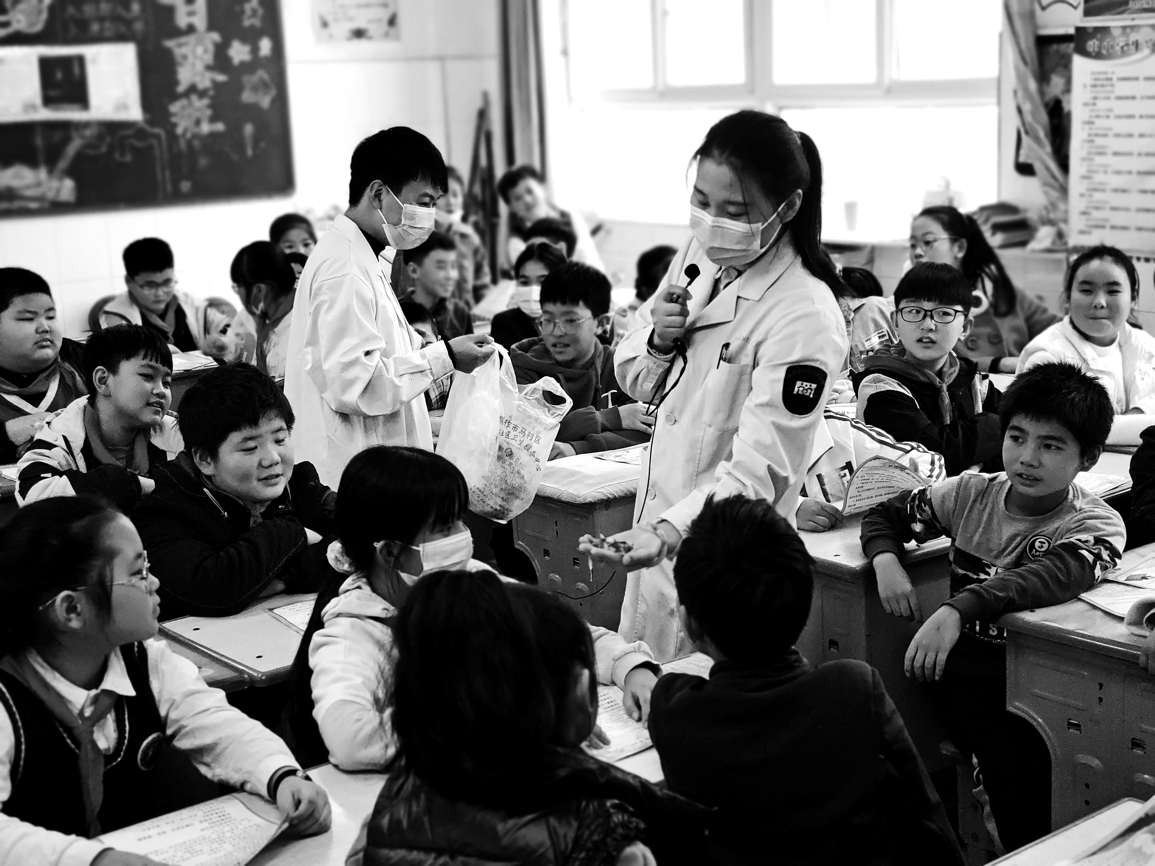 近日,焦作市马村区九里山社区卫生服务中心医务人员在待王小学讲解中医药知识。为了普及中医药文化知识,马村区卫生健康委党工委精心组织“中医药文化巡讲进学校”活动,为学校师生送上了妙趣横生的中医药知识,受到广大师生的欢迎。 王正勋 侯林峰 梁 双/摄