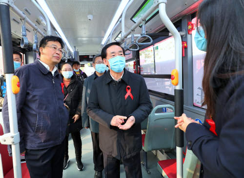 2020年11月29日,河南省副省长戴柏华到“艾心号”公交车了解艾滋病知识宣传。