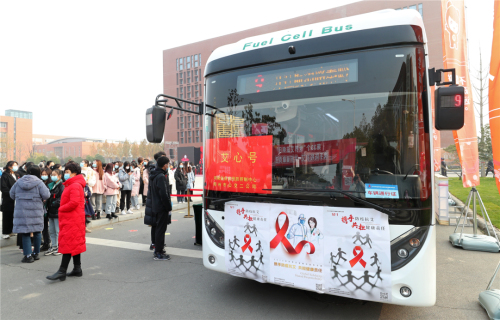 河南省疾病预防控制中心和郑州公交二公司联合推出31辆9路“艾心号”公交宣传车