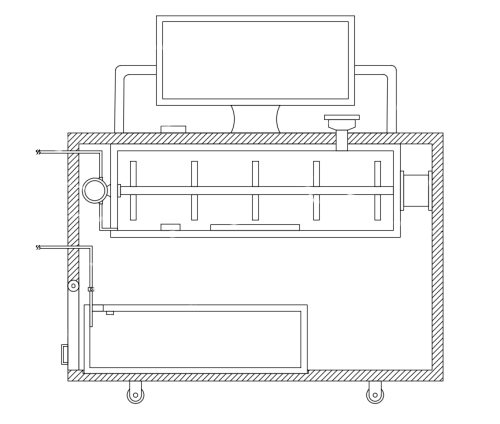 □王 旭 王丽敏 张 丹 文/图 技术背景 目前,膀胱内感染、泌尿系出血性疾病及经尿道前列腺电切术后的患者,通常需要留置导尿管并进行药液间断冲洗或生理盐水持续冲洗。目前,膀胱冲洗主要有两种方式,一种是密闭式冲洗法,另一种是开放式冲洗法。开放式冲洗法主要是使用膀胱冲洗器或大容量注射器进行操作:冲洗前,先将留置导尿管或膀胱造瘘管与远端引流管的接头分离,远端引流管接头用无菌纱布包裹后放置在一旁,随后对导尿管或膀胱造瘘管末端进行消毒,并用无菌纱布托住;将装有冲洗液的冲洗器连接至导管末端,缓慢注入冲洗液,再使其自然流出或缓慢吸出,如此反复操作,直至流出液澄清为止。 现有膀胱冲洗操作存在以下问题:无法精确控制冲洗液的温度和流速,流出液体量无统计记录,且尿液变红时难以及时发出警报。为解决这一问题,有必要设计一种膀胱冲洗机,通过触屏控制电脑实现对冲洗液温度和流速的调控,统计流出液体量,并利用红外线感应仪在尿液变红时及时报警。 创新内容 这种膀胱冲洗机主要由壳体、箱体、触屏控制电脑等组成。壳体的后侧固定有推杆,顶部安装有触屏控制电脑,内顶部固定有箱体。箱体的侧壁安装有电机,电机的输出端固定有传动杆,传动杆贯穿箱体并与其转动连接。传动杆的外壁上固定有多个搅拌棒。多个搅拌棒呈等间距分布。箱体的内底部固定有加热板和温度检测仪。壳体和箱体上共同贯穿设置有与其固定连接的进料斗。箱体还连接有第一连接管,管上固定有水泵。壳体的内底部放置有收集箱,其内顶部安装有红外线感应仪。 壳体上贯穿设置有与其固定连接的收集管,该收集管的外壁安装有流量计,一端延伸至收集箱内。壳体上安装有紧急关闭按钮。 水泵与箱体的侧壁固定连接,并通过第二连接管贯穿壳体。 进料斗的顶部安装有密封盖,外壁和密封盖的内壁分别设置有相配合的外螺纹和内螺纹。 收集箱上贯穿设置有通口,供收集管贯穿。 壳体的侧壁安装有旋转门,其外壁安装有U形把手。推杆的外壁设置有一层橡胶材质的保护套。 有益效果 1.通过操作触屏控制电脑可以启动加热板,然后对冲洗液进行加热,并由电机的输出端带动传动杆及搅拌棒旋转,从而实现对冲洗液的搅拌,确保其受热均匀。温度检测仪可以实时监控冲洗液的温度,并将数据反馈至触屏控制电脑,便于用户掌握冲洗液的实际温度。 2.通过操作触屏控制电脑可以启动水泵,通过水泵的作用将冲洗液通过第一连接管、第二连接管注入患者的膀胱内进行冲洗。此外,还可以通过操作触屏控制电脑调节水泵的功率,从而掌控冲洗液的流速。 3.流量计用于统计收集到的冲洗液的总量,并将结果实时显示在触屏控制电脑上。 4.红外线感应仪可以实时监控冲洗液的颜色变化。当尿液呈红色时,系统通过触屏控制电脑自动发出警报,实现对异常情况的智能预警。 (作者供职于临颍县人民医院)