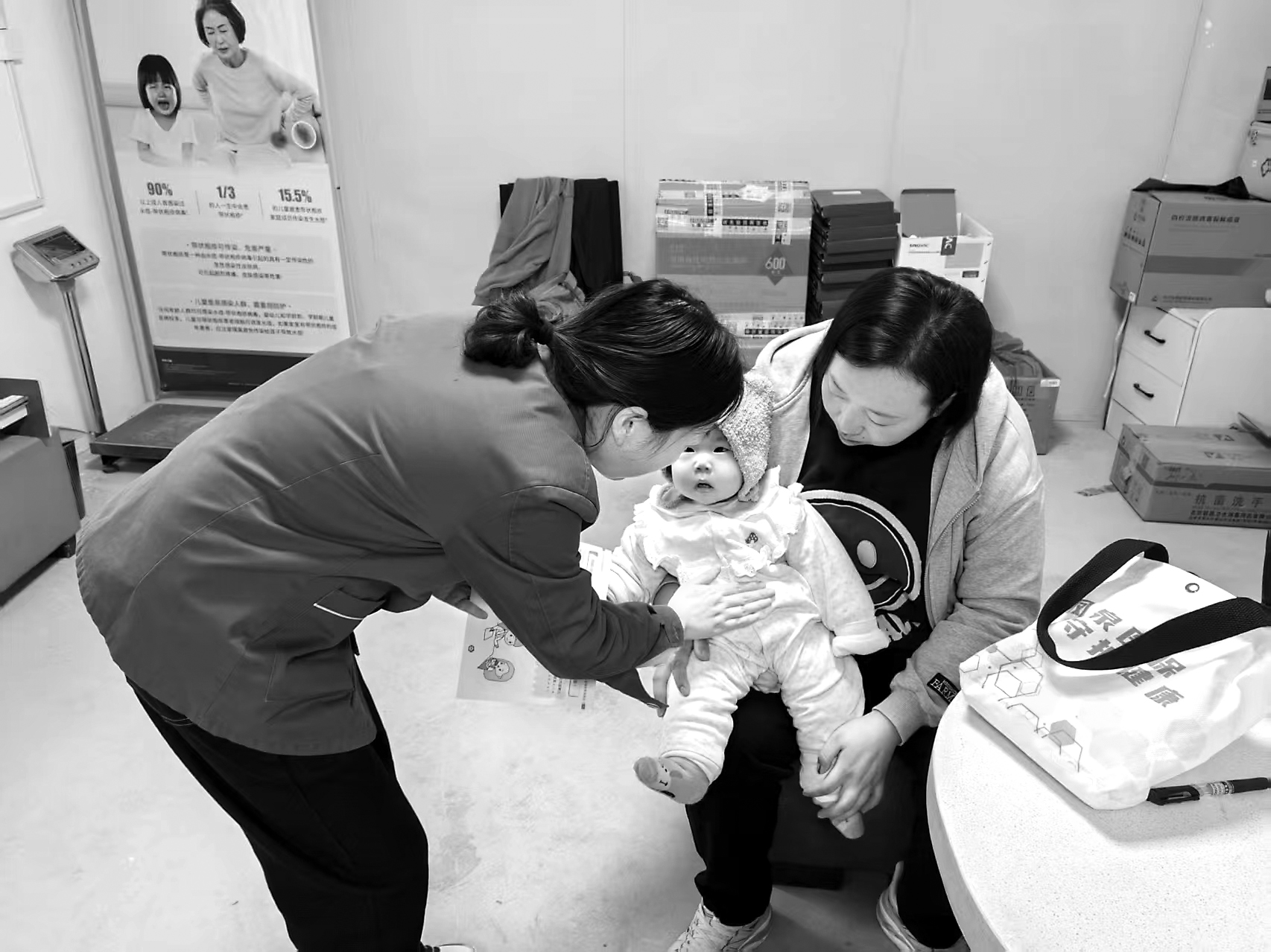 ↑4月21日,新乡市凤泉区宝东社区卫生服务中心,医务人员为家长进行中医健康宣教。连日来,该中心开展以“小手儿按一按,助力儿童健康”为主题的全国儿童预防接种日中医健康宣教及穴位指导活动。 常俊伟 胡淑娟/摄